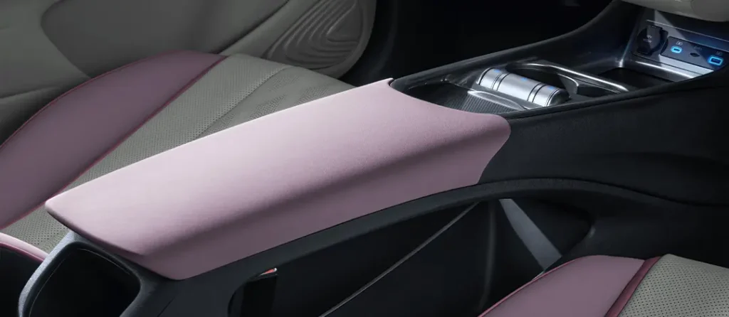 Desain konsol tengah yang futuristik menciptakan lingkungan berkendara yang modern dan dinamis dengan detail trim logam yang melintang di seluruh dashboard, membentuk permukaan melengkung yang indah dan minimalis.